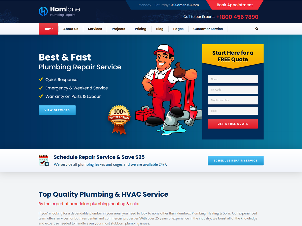 Homlane is a Wordpress theme to create a website for any type of Business specially for plumbing companies, Hvac companies, Individual plumbers and home repairing work Business. Homlane comes with powerful features. Homlane is a clean responsive wordpress theme. It includes Elementor drag & drop builder plugins free with theme. The theme comes with the option of contact form to allow users to contact you. Homlane is fully compatible with latest version of plugins to allow you easy handling. The Homlane comes with one click demo and also more flexible features.